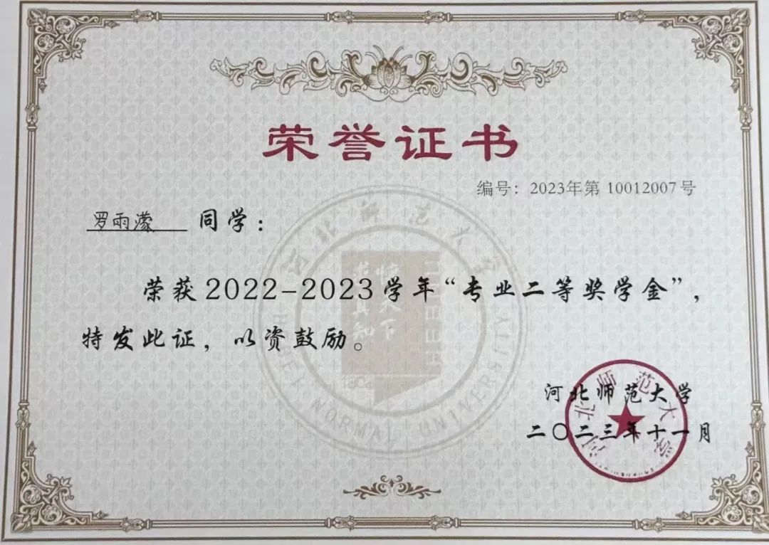 立身以立学为先,立学以读书为本。罗雨濛始终坚持践行青年马克思主义者的使命担当,在理论学习与实践探索中砥砺奋进。连续两年获x站 专业二等奖学金、院级三好学生,参加x站 第29期青年马克思主义者培养工程,并顺利结业。参与的科创项目获2023-2024年度河北省大学生“调研河北”社会调查活动立项1项,x站 大学生课外学术科技创新创业竞赛立项2项,x站 “挑战杯”竞赛红色专项活动立项2项。