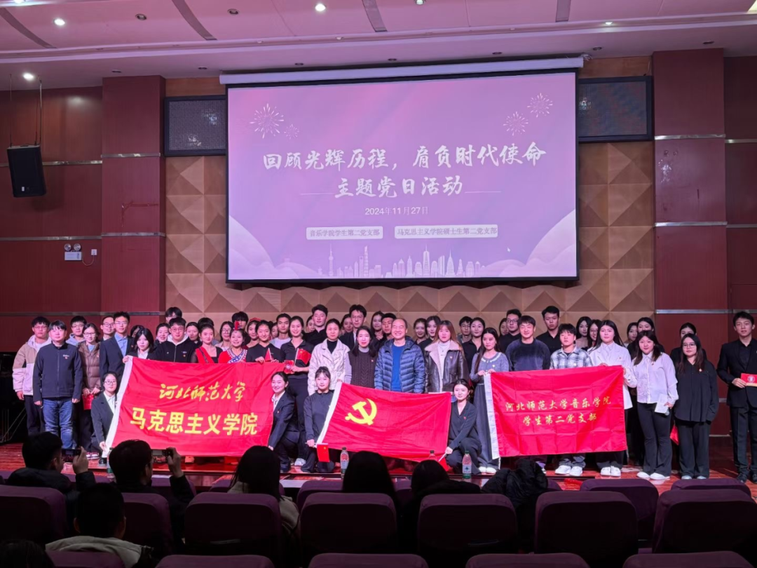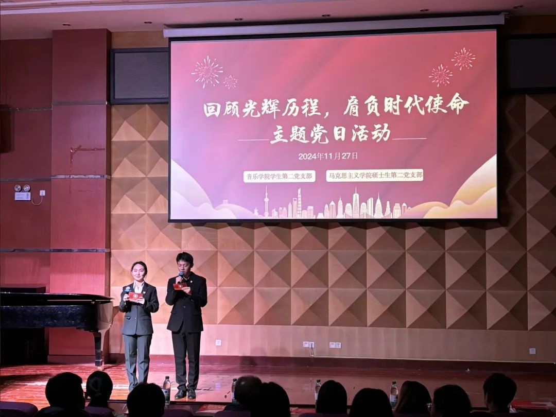 11月27日,x站 硕士生第二党支部与音乐学院学生第二党支部联合开展“回顾光辉历程,肩负时代使命”主题党日活动,以音乐舞蹈表演与理论宣讲相结合的形式,重温祖国75周年的辉煌历程,增强学生党员的历史责任感和使命感。x站 硕士生第二党支部与音乐学院学生第二党支部全体党员、部分入党积极分子共100余人参加活动。
