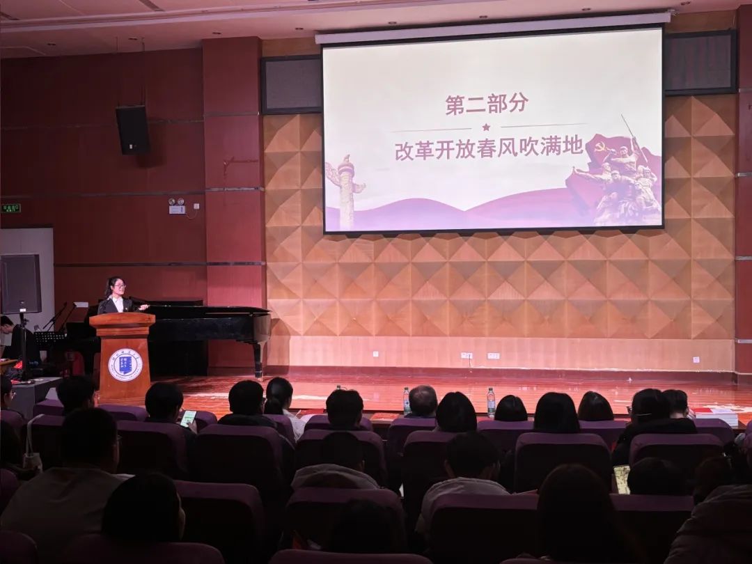 x站 “红砖”宣讲团成员魏若冰进行“改革扬帆风正劲,击鼓催征再出发”主题宣讲,回顾了改革开放以来取得的伟大成就,用新时代青年榜样的先进事迹号召同学们立志做有理想、敢担当、能吃苦、肯奋斗的新时代好青年。音乐学院学生第二党支部党员表演钢琴四手联弹《在希望的田野上》和声乐演唱《春天的故事》,表达了人们对新生活的期盼和对祖国未来的美好祝愿。