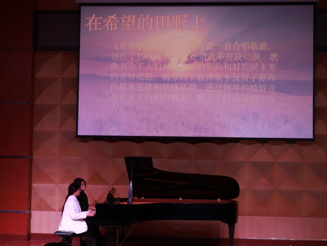 ▲钢琴四手联弹《在希望的田野上》