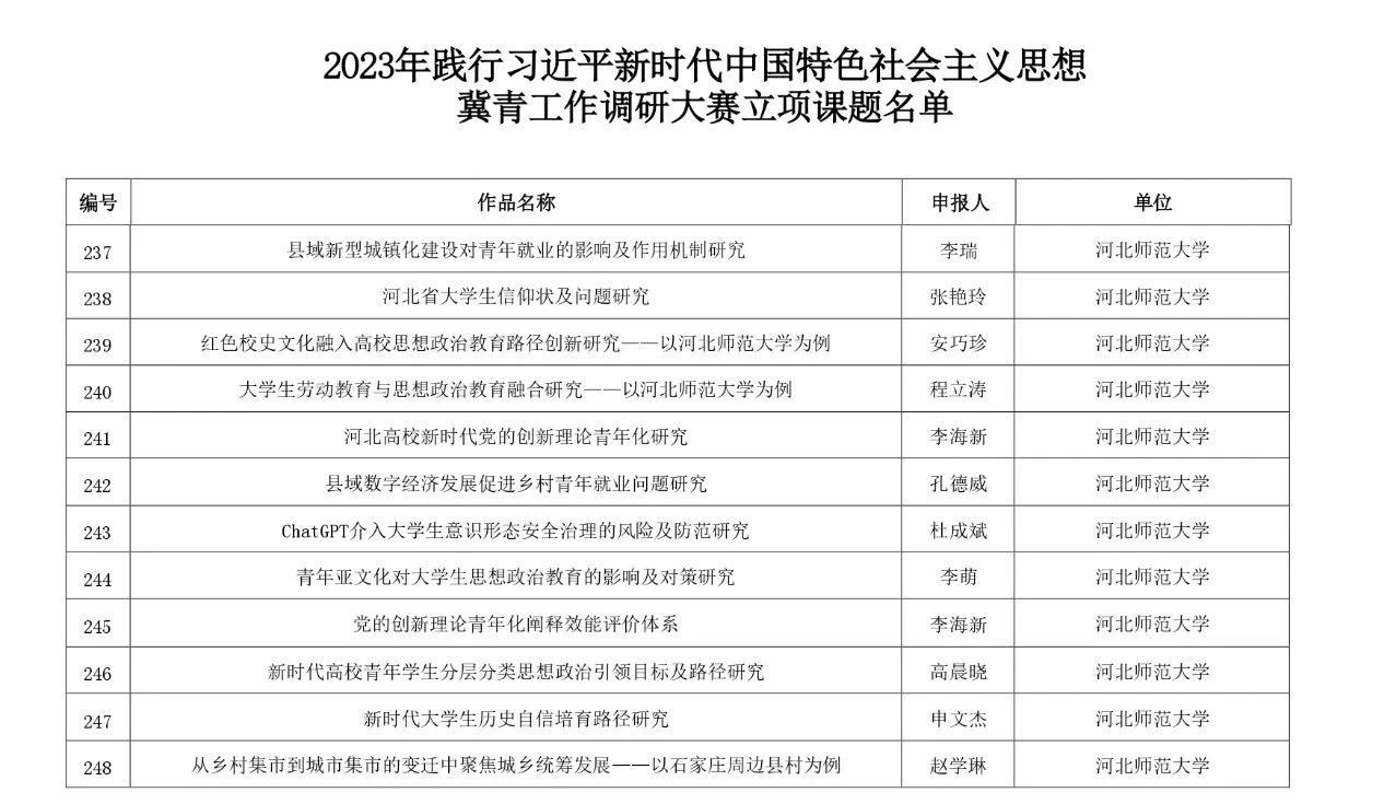 近日,2023年践行习近平新时代中国特色社会主义思想冀青工作调研大赛立项结果公示。x站 获批32项冀青工作调研项目立项。